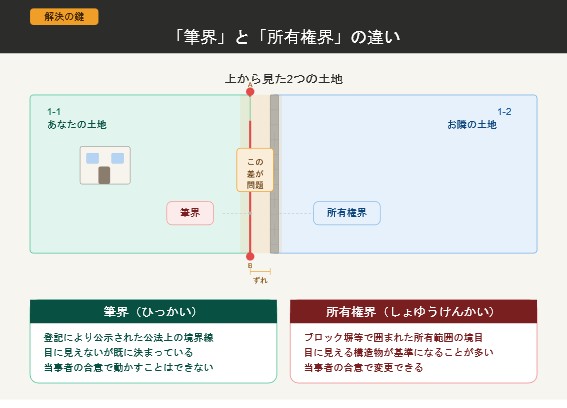3. 解決の鍵!「筆界」と「所有権界」の違い