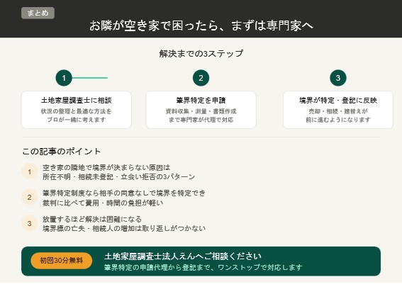 まとめ:お隣が空き家で困ったら、まずは専門家へ