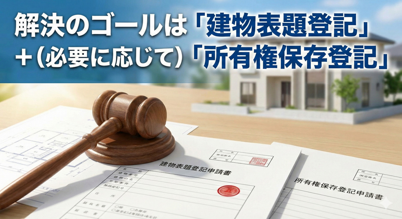 4. 解決のゴールは「建物表題登記」+(必要に応じて)「所有権保存登記」