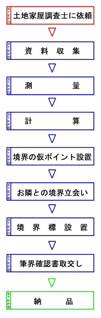 資料収集から始まり境界確認書の取交しを行い納品まで様々な作業があります。