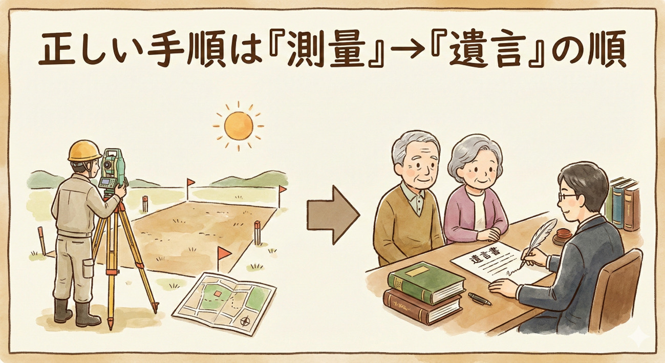 遺言の内容が固まってきたら、可能であれば生前のうちに「境界確定測量」まで進めることを強くお勧めします。