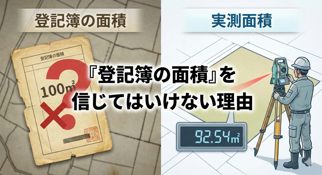 多くの方が、「法務局の登記簿(全部事項証明書)に書いてある面積=正しい面積」だと思い込んでいます。