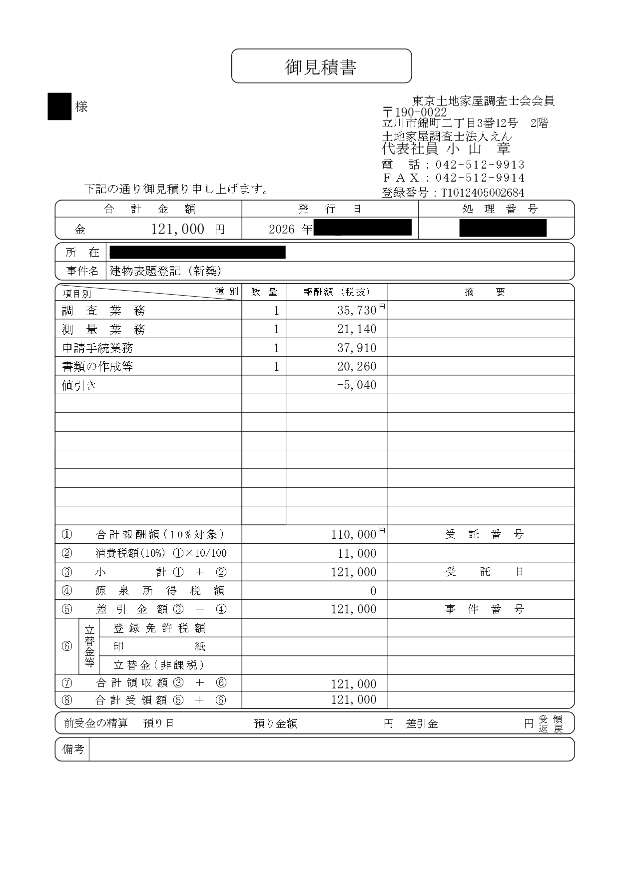 (実際の見積書)